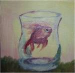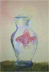 This series was completed the day after Christmas with all the snow-hubbaloo. I painted the backgrounds without knowing what the subject was going to be. I really enjoyed the colors and the yellow happy I felt. I started the fishes first. All the glasses were drawn from life, really every type of glass I have in my apartment (except the perfectly cylidrical one, for some reason). The fish and birds were found on the internets. I think I just wanted to do something whimsical. The birds are specifically titmice and I’ve been drawn to them due to the word’s appearance in my Contemporary Novel assignment Out Stealing Horses. Before reading that book, I didn’t know that a titmouse was a type of bird. I love misleading names like that. It’s cute. I think the fish are more successful because of how the sillouette adds interest to the composition. I wanted to convey a quiet suffering. At first it’s just whimsy, but at some point the viewer realizes they are doomed little things.