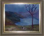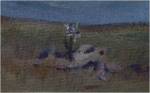 The Hills from Scottie’s photograph in England + tree + rabbit + what I tried to be a golden chrysanthemum = this. Something about slight gloom I like.