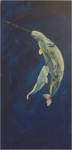 More of the sea creatures today… Tried to incorporate multiple figures… It’s kind of not the same. I like the lonely feeling of a single animal drifting in the dark. But, they’re fish, so they are kind of mindless, lacking personality. I like the background. I have a hard time slitting open my narwhals. They are so cute and pure looking. Unicorns of the sea. I definitely get a Wyland feel from the series. It probably comes from growing up in Hawaii and being around his work a lot.