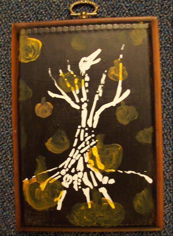Skeleton tree with pumpkins