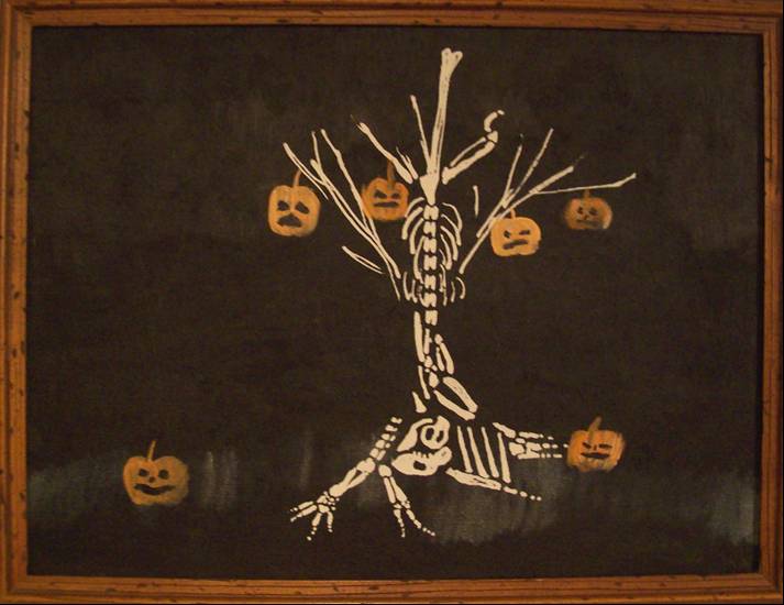 Skeleton tree with pumpkins