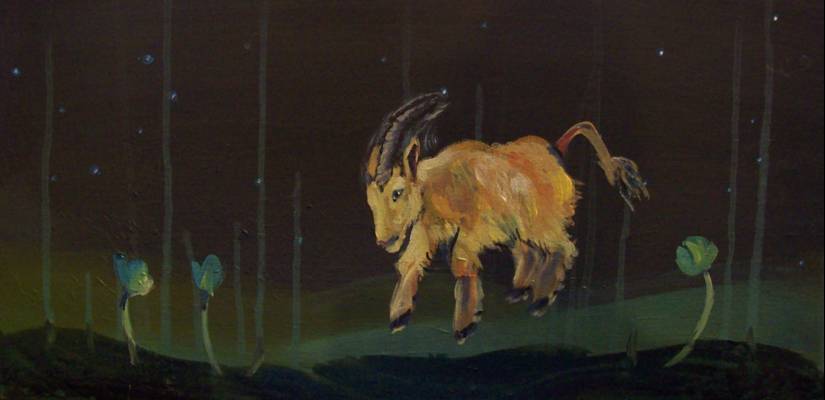 In Hard-Boiled Wonderland and the End of the World, by Haruki Murakami has a short story regarding golden, single-horned beasts with gold fur and blue eyes.