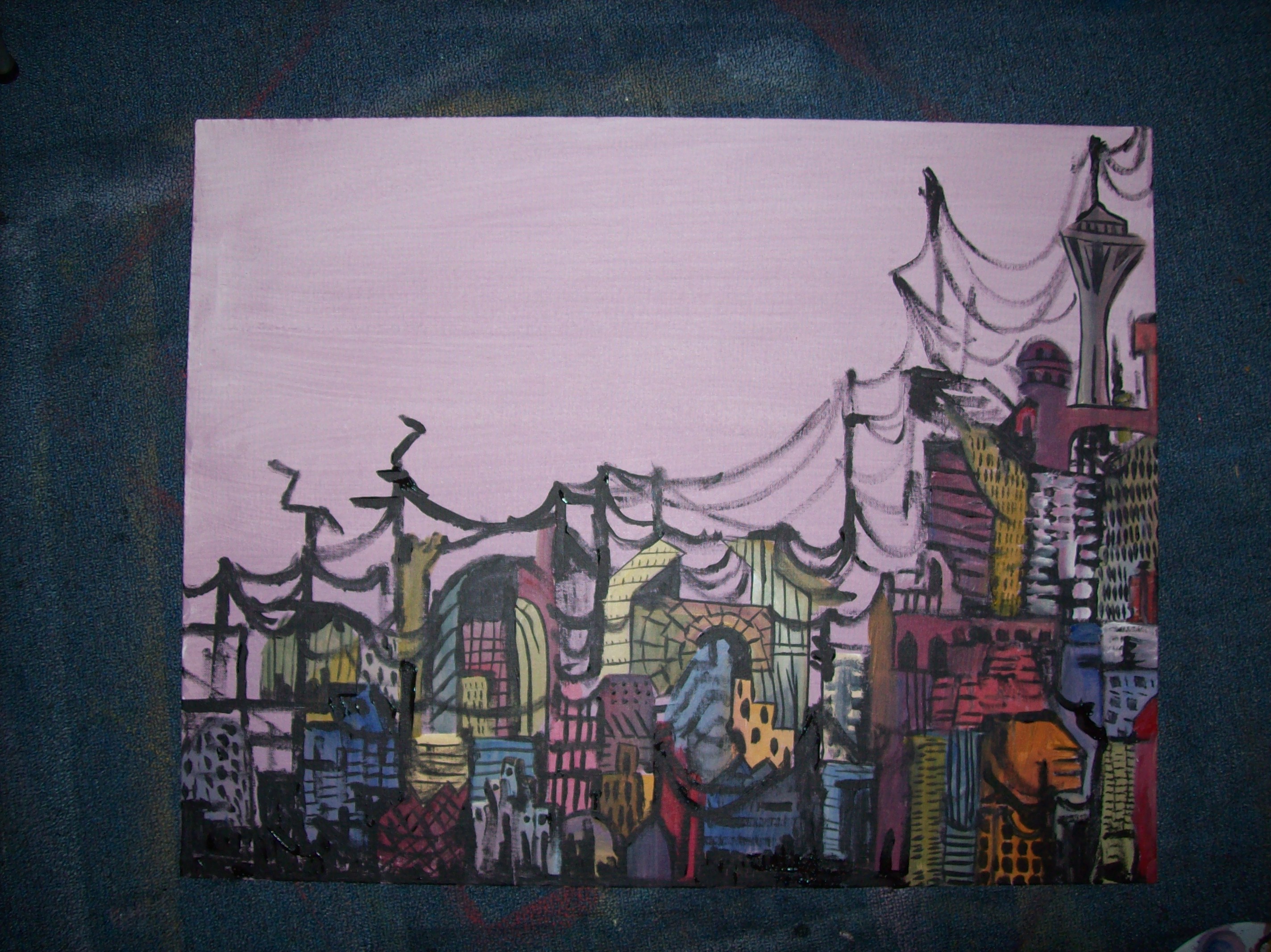 FutureCity is the title of this collaboration between myself and local Seattle artist, Erik Bear. His concept, my color palette and we both painted it simultaneously. I think it turned out well for my first collaborative painting. More to come hopefully.