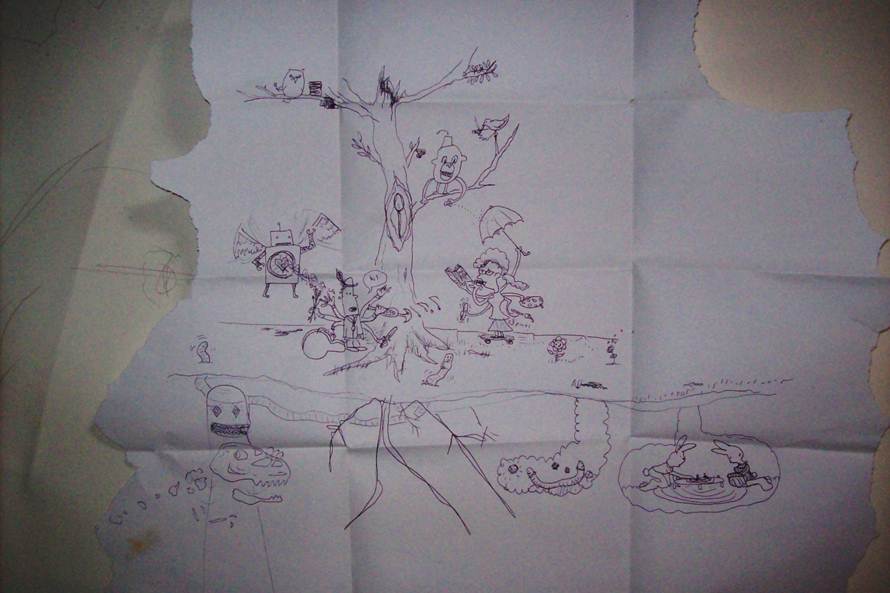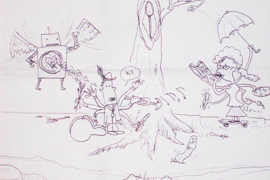 The late post for this drawing I made collaboratively with Chicago artist, Brandon Kennedy, on September 4th. We were waiting for our deep dish pizza at an eatery downtown and thought to amuse ourselves with a ball point pen.