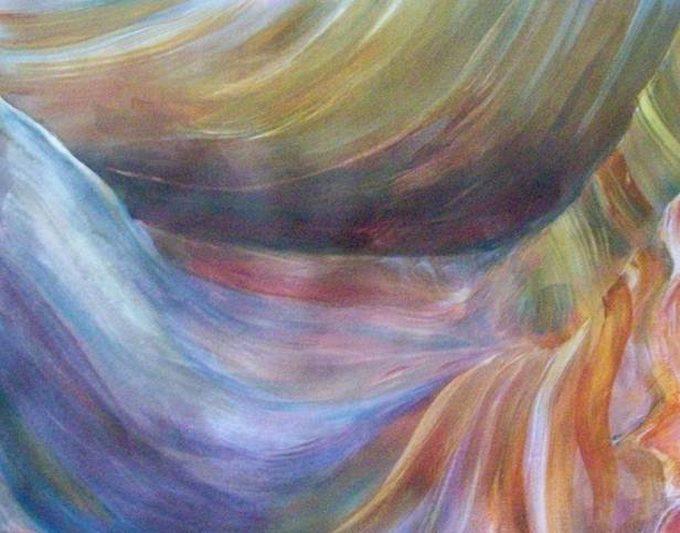 I don’t know if the photograph of the painting gives the work too much credit or doesn’t do it justice. The colors shift with the lighting, with the levelness of the painting. So recently worked on, it won’t lay flat. The wave has waves, everything is warped anyway. People will see what they want to see. Is it a curvaceous cavern or the wistful ocean? Whatever it is, it is a birthday present for my dad.