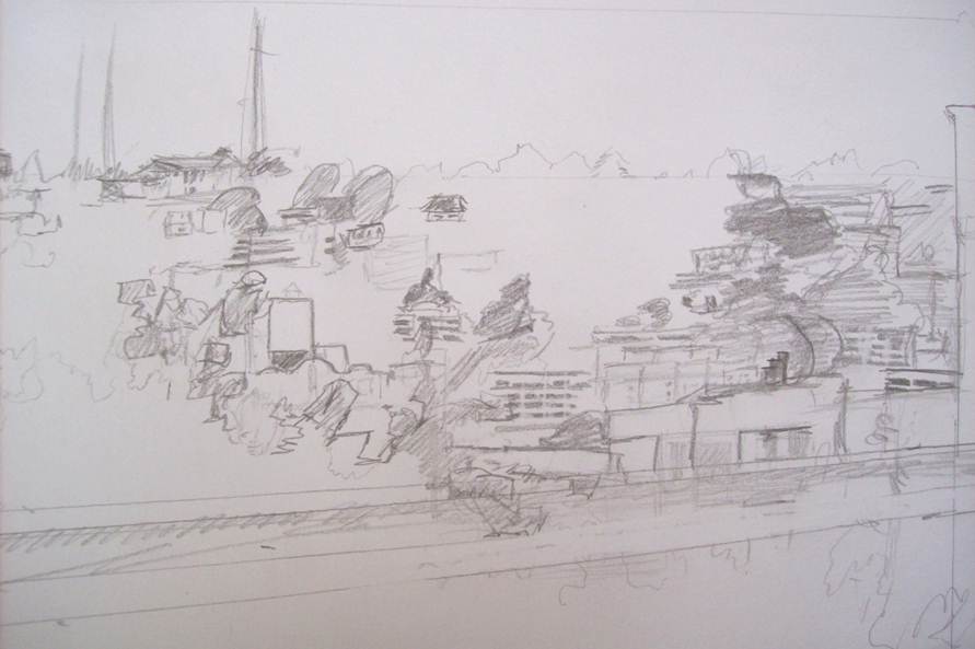 The picture plane is the surface in space where your picture is waiting for your wits to grow sharper. Today, I sketched this in drawing class. It’s Queen Anne. The neighborhood has always let my eyes rest on it. It is truly cute and cozy-looking they way they are all nestled onto that hill.
