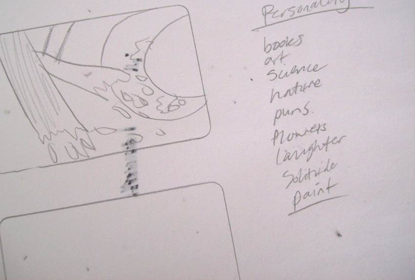 “In class exercise: The theme for today is type and expression. Use your initials to reflect your personality.” I created these. After doing some brainstorming with words (instead of thumbnails) I felt like I had a better grasp of what I wanted to acheive.