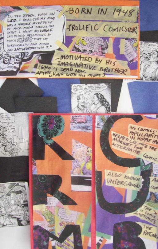 Assignment: assigned topic– R. Crumb. Dimensions– 17×11 in. Other than taking a bad picture of the poster, I had trouble with this poster as it progressed. There might have been an optimal time to start, but after seeing all those movie posters in class, I felt that the collage-y chaos didn’t cut it, but I continued to cut it, hoping to give it more form, but instead, adding to the mess. I will try a different approach tomorrow.