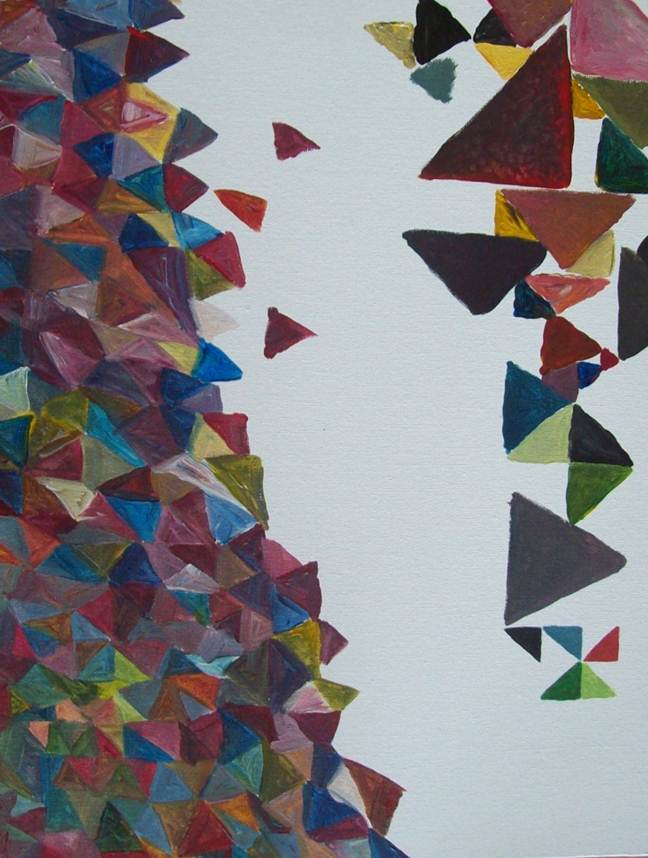 Here, we decided to paint some triangles with acrylic. It is an interesting painting to me because you can see we are having a conversation with triangles and disagree.