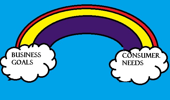 Actually, Laura didn’t mention anything about ponies, but she started and ended her presentation on a rainbow (as seen above). She asserted that when you align the business goals and the consumer needs (meeting their expectations with your product) then you have harmony. (Rainbow in this case=harmony– rainbows can mean so many things!) I was surprised that she made this whole presentation in PowerPoint. Here on the fifth floor, (Macs reign surpreme) it was refreshing to see that the rest of the world continues to run smoothly using their Microsoft products.