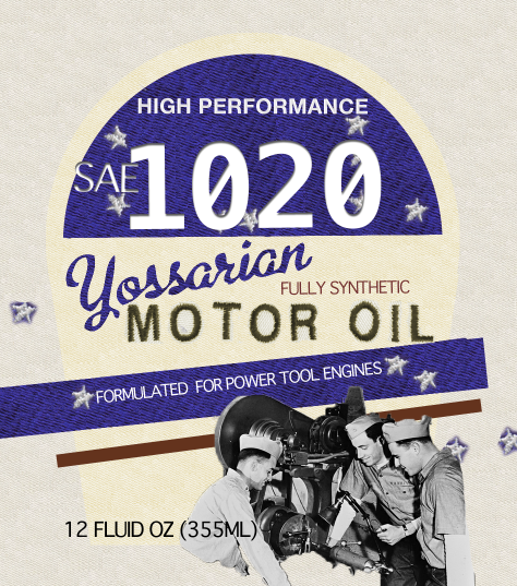 I lost the original file for this somewhere in my computers. Probably because I haven’t invested in a home for all of my things, I always assume that if my home computer doesn’t have something, my school computer does and that’s not always the case. But, it is a good exercise to redo projects because it’s never the same twice. All the happy accidents and re-considerations make a better product. I addressed the issue of prominence. For practical products, it’s important to have the type, the part that consumers look for, nice and big so that when they are looking, quietly whispering to themselves the numbers of the specific requirements, they’ll see this label and Bam! A purchase is made. This motor oil is especially formulated for hipsters longing for a past where the red, white and blue where symbols of can-do attitude and hard work.