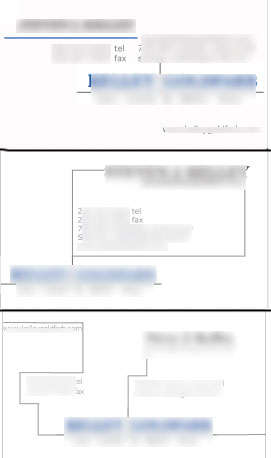 My crtique: Two of the three versions had too much line action– attorneys are conservative. All versions had font sizes lower than ten, which especially for older people–my sup said “less-than-40-eyes”– it’s a pain to try to get a phone number off a business card.