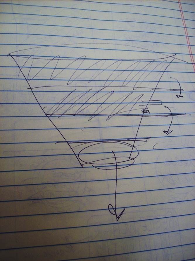 My boss told me a story about how he and the team who does construction for his house had a few meetings to build trust and understanding before any paperwork was signed. He said that architects and ourselves have very similar jobs. He described the project process like a funnel (see funnel diagram), where you start by getting to know a lot about the client (the wide part of the funnel) and then with time and consideration you narrow it down by having meetings and analysis until it comes down to a very focused thing.