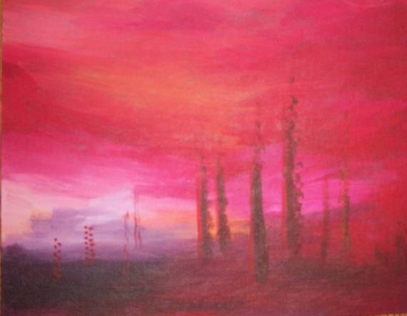 I spent a part of the afternoon painting today with Pete. I didn’t have anything in particular in mind. I started a couple of backgrounds like the one above and I moved on to working on a painting of what he suggested: a clown. I am not ashamed to post it on the Internet for the world to see. It’s simply not finished. Here’ s Pete’s painting.