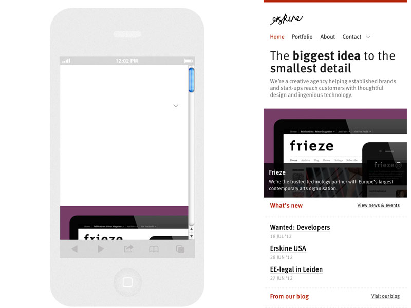 In our design/developer toolbelt, we have Responsinator and Responsive Design Bookmarklet to ease the Responsive Testing Process. (There are a bunch of these sites, if you want to shop around. I like Matt Kersley‘s because it seems more indie. Let me adjust my hipster glasses as I say that.) They shrink down the website for you (and in the case of Responsinator, it adds a grey version of the device whose screensize that is). Chris Pederick (Web Dev Toolbar Extraordinaire) also offers features to streamline the process.