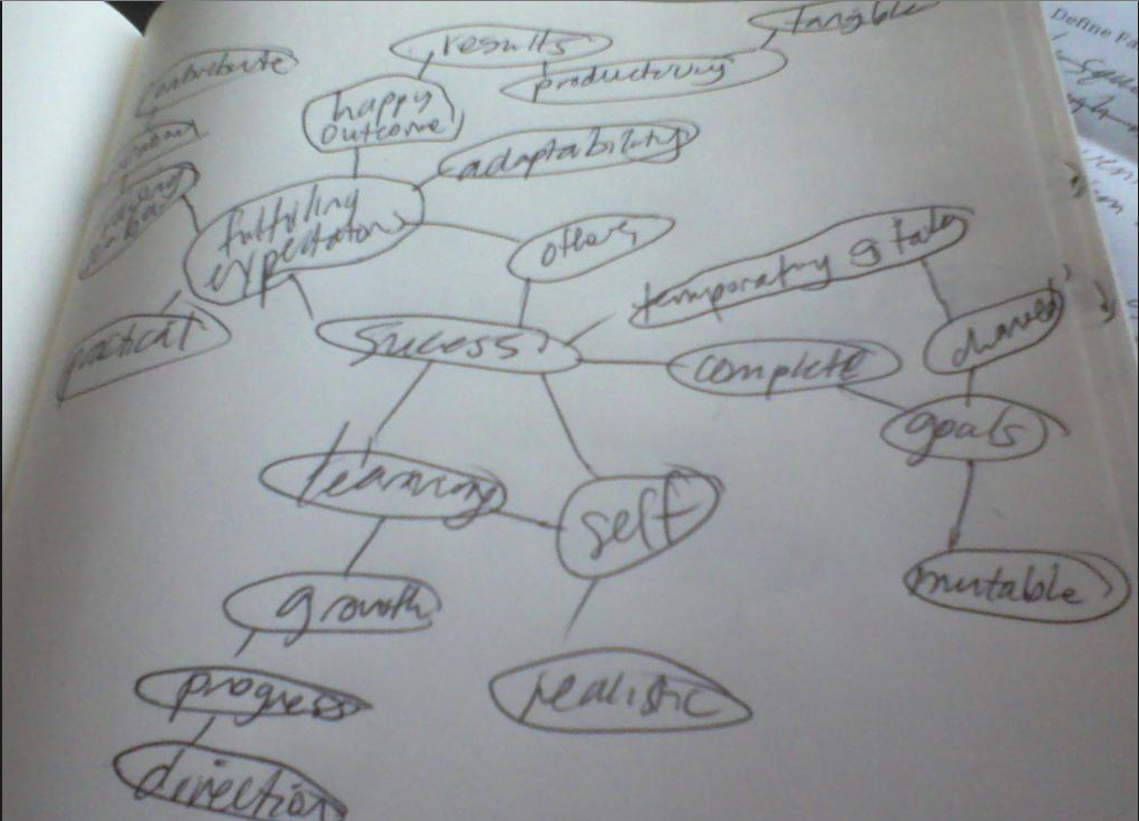 The first exercise is a definitions rally. In groups of four, we brainstormed for an hour on the definitions of the words: Success, Failure, Effort, Challenge. After an hour we collectively approved and appended our definitions.