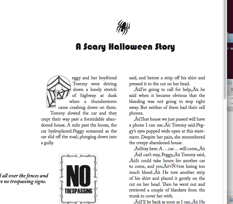 Objects (or after place and format): Incl. Drop Cap, NoTres Image Spider image and PullQuote