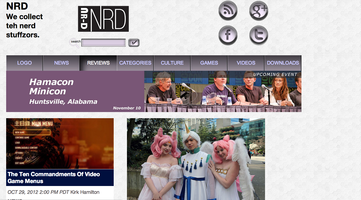 Critique from the Fadiman (web teacher): “More white space, especially between elements vertically and in terms of line height. Elements in header are crowded and unharmonious. More padding in those boxes around your headlines. I think inclusion of a younger, edgier font. Advertising needs to be integrated, not marginalized to the right column. Content and structure are great, but needs more social.”