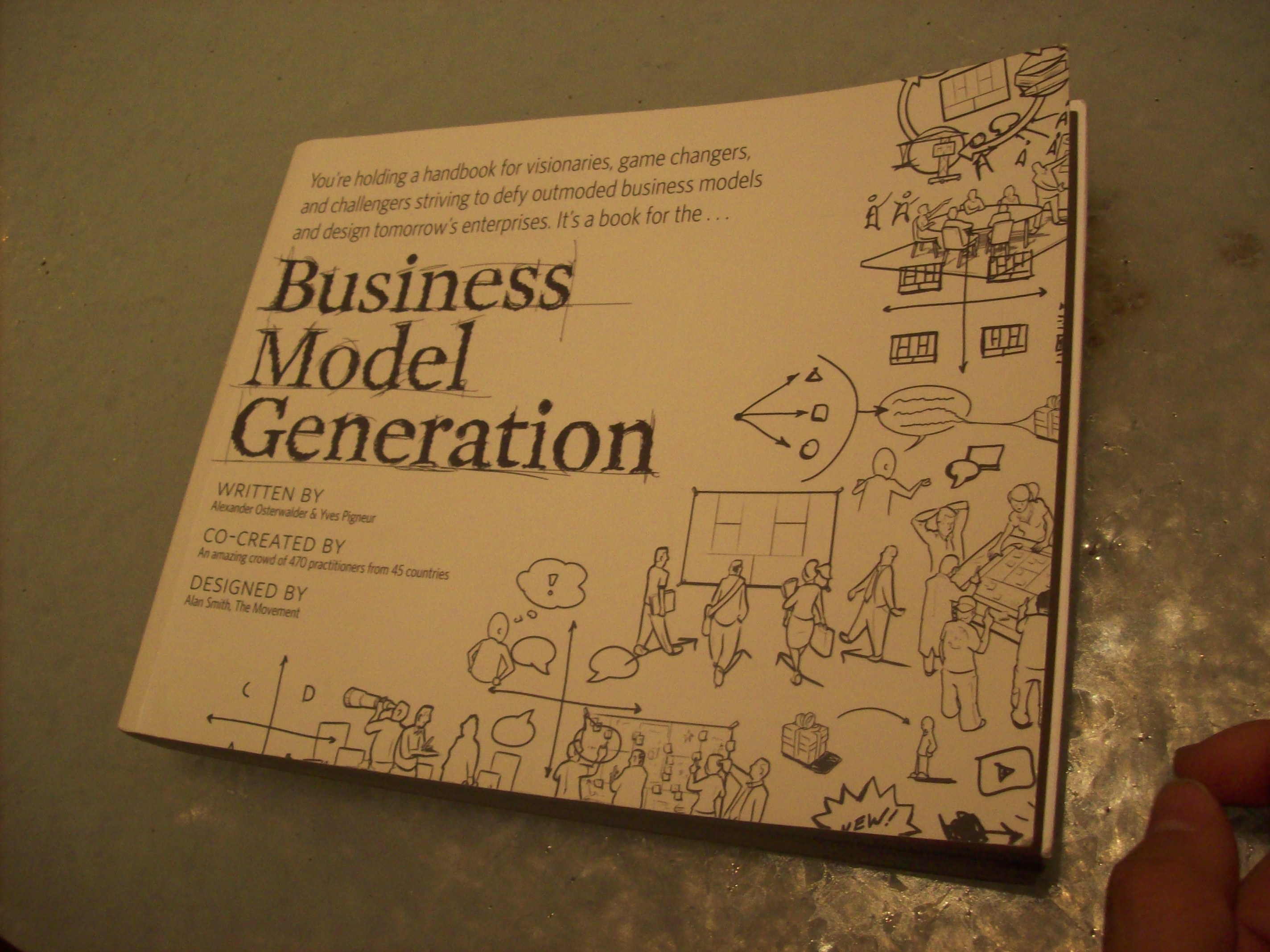 We sat through an hour and a half of actual pitches that people have been thinking about. Lots of apps. A few specialized social dating sites. We voted on which ideas would be made into projects then joined teams. I’m in a team with an entrepreneur/material scientist, a motion graphics designer and a marketer/business guy. We met up, exchanged contacts, established ideas further and we’re now developing some rough sketches of the business model, value proposition, etc. We spent a little time looking through a book brought by our business guy, Trevor. Business Model Generation. Tomorrow’s going to be a long day.