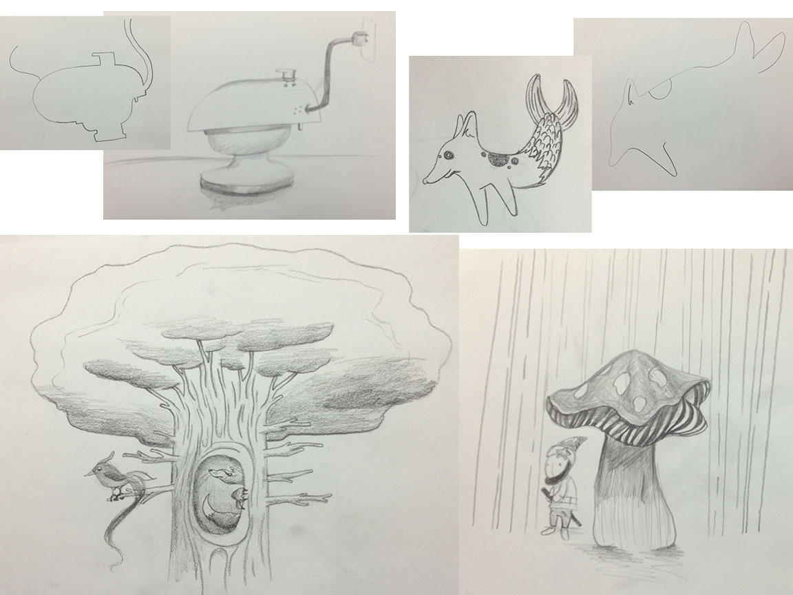 Drawing club. We drew this together. We did the collaborative drawing exercise, drawings that we took turns drawing one line at a time until a vague picture formed then each of us reinterpreted the drawing. This is a great exercise when you don’t know what to draw. The bottom drawings are when we worked on a picture for fifteen minutes then switched and added to the other person’s drawing.