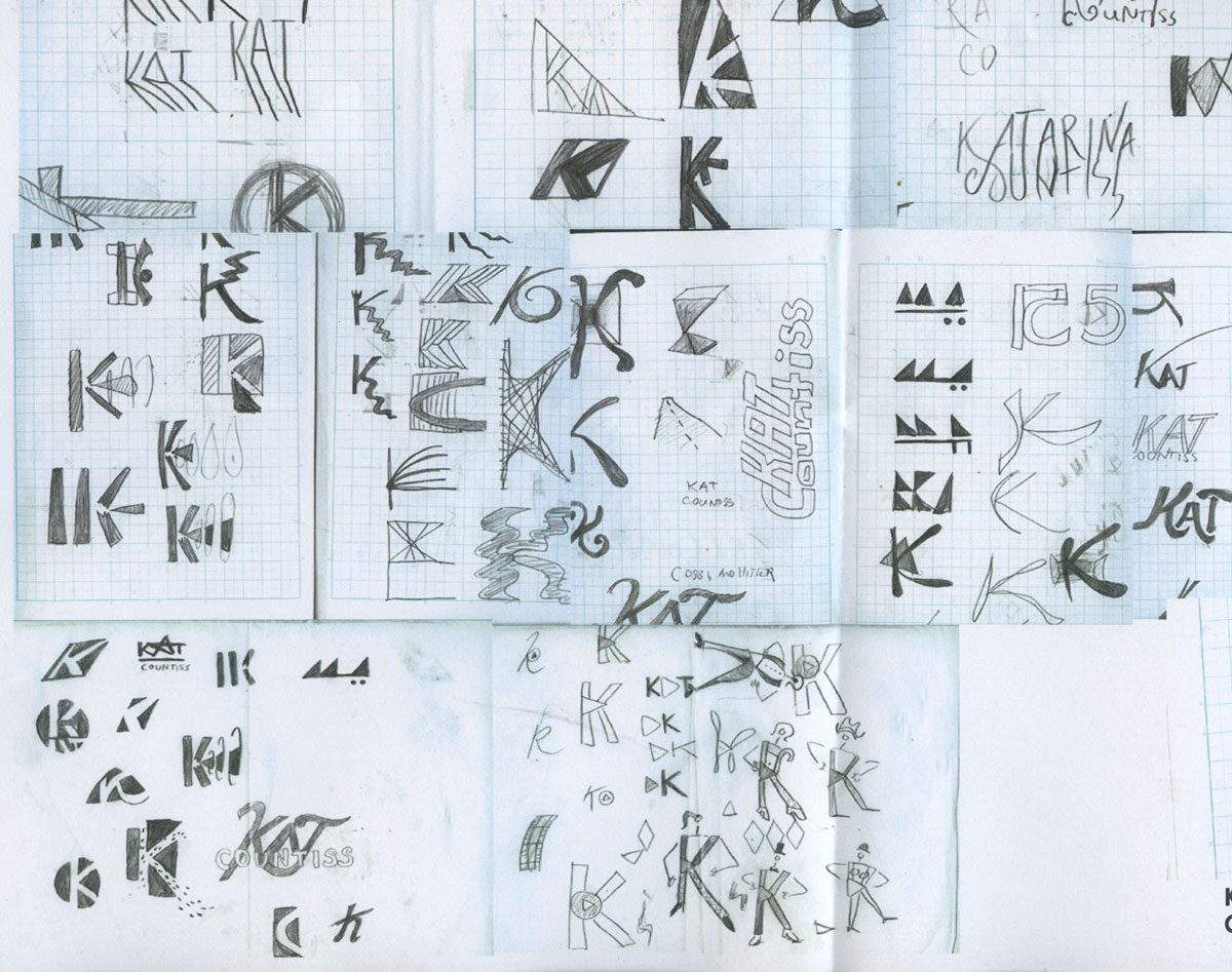 This is what I presented in critique today. We went over thumbnails. Tom didn’t say much about mine except that with a name like “Kat” why would I need more than three letters? I should consider myself lucky. I am not sure if I want to take his advice and go that route. I’ve done some thumbnailing and “KAT” just seems like an acronym without a cause. I don’t aspire to be Cher or Eminem. I strongly believe that a person earns their two names like Albert Einstein or Leonardo DaVinci. I like this mark. I think it is whimsical and it feels real to me. I am inspired by it and I want to see how far it goes.
