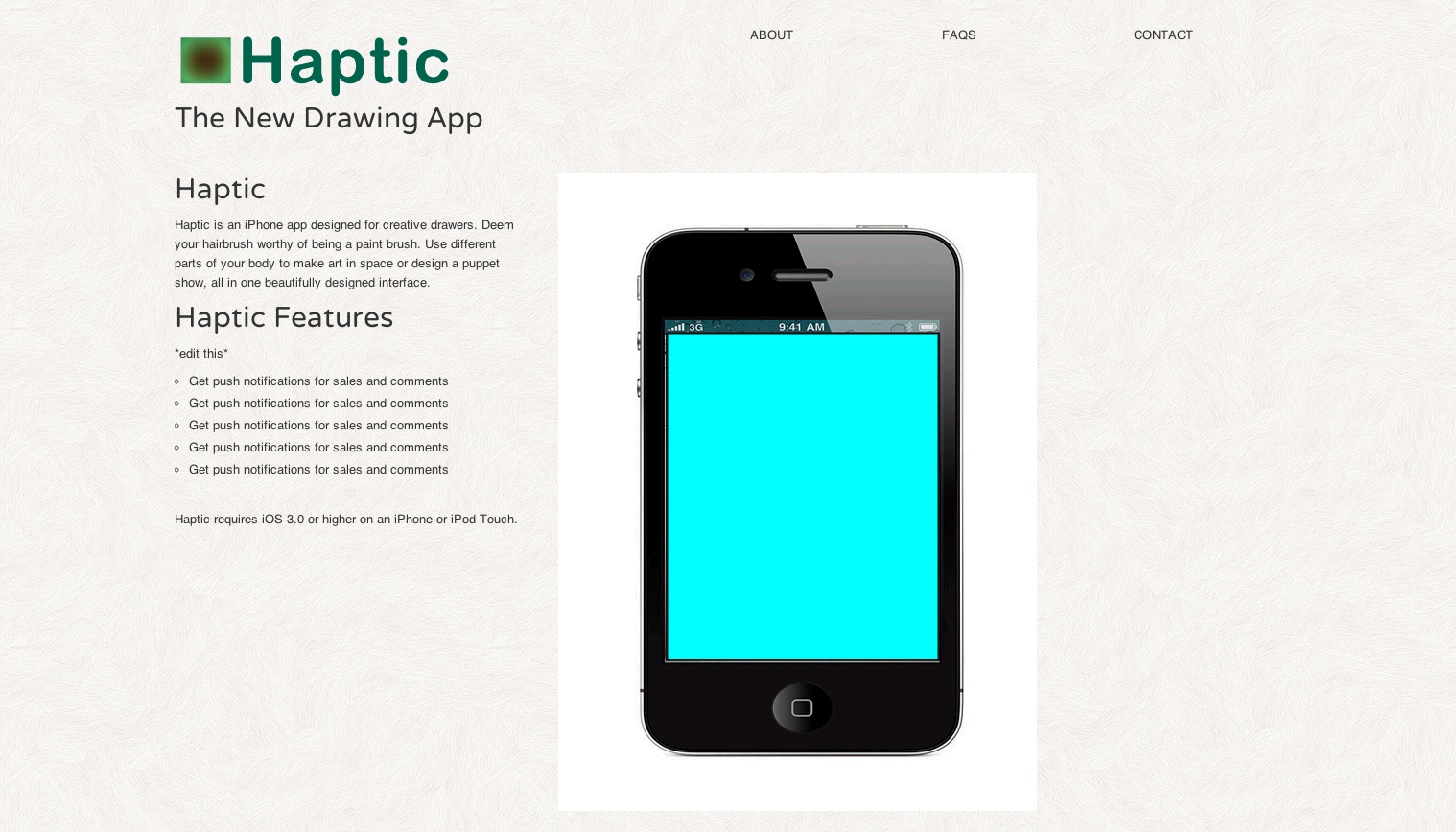 Haptic, the App. (this is where my app’s landing page will live.