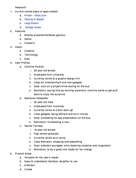 I had a moment of clarity last night when I realized that this app is not incredibly realistic and I am happy about that. I wanted to make something forward looking. This app comes with bracelets and a set of goggles so the user can see a 3D interface and utilize space. This makes sense from a humanistic stand point. Our brains are better equipped to interact in a 3d space.
