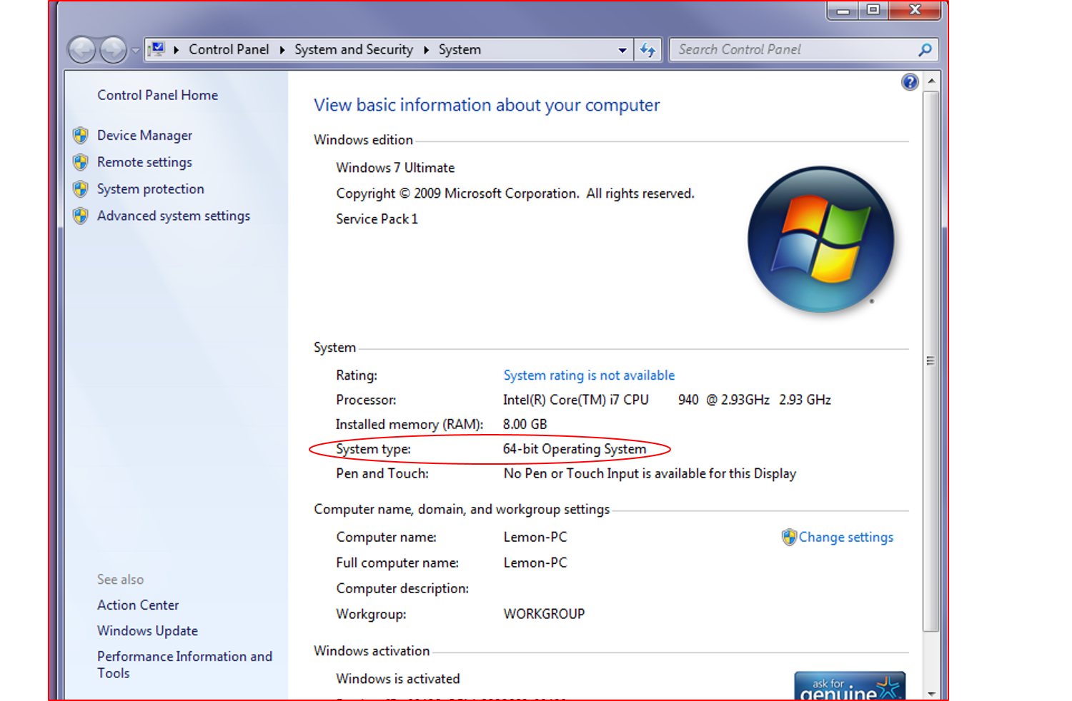 At this downloading site, there are two options, 32-bit and 64-bit and it refers to the operating system you have. If you’re wondering as I was, go to your computers control panel > system and security > system to get this. (Yes, I named my computer Lemon.) It’s a huge zip, so downloading it might take a while.