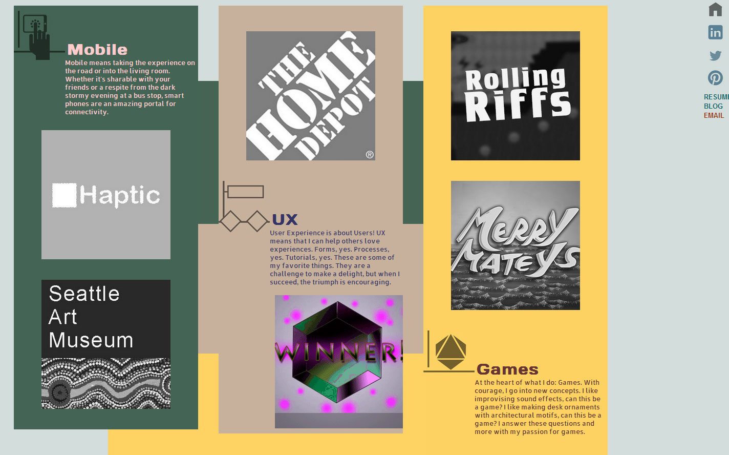 I worked on my resume page and found that I wanted to expand on the composition of the home page. (Think similar but different.) I played around with a few different backgrounds…