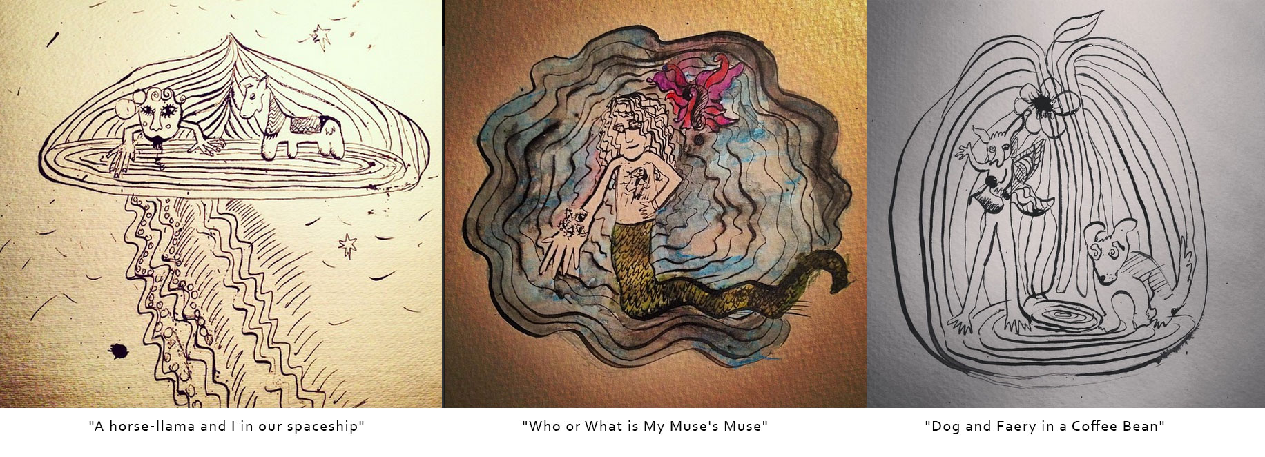 Since I’ve started #inktober, I’ve created 3 images. I tried to do a 30 day challenge before with less success. Social Media helps as a reminder and incentive to stay with it. I am really glad to say that so far, so good. It’s been interesting having an opportunity to express myself with ink everyday. I approach the watercolor paper blank. It’s blank and I’m blank. I start drawing and it develops before my eyes like a Polaroid coming from a place that I was kind of aware of, but I’m wondering how deep it goes and how weird it gets. I don’t plan it out, but it’s really comforting to see pairs in the foreground. After years of mostly solitary figures in my work (look at the Drifters or the Nicole Series), it’s interesting in this brief beginning to see a theme of pair.