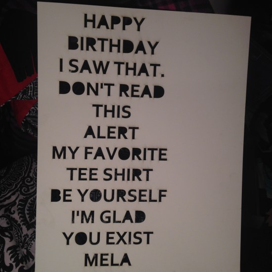 In this case of the Thank You shirt (one of a kind, see below), there’s a sweetness to it. The original design underneath, the flowers peeking through the wall of “thank yous” gives the design depth and more than just text to look at.