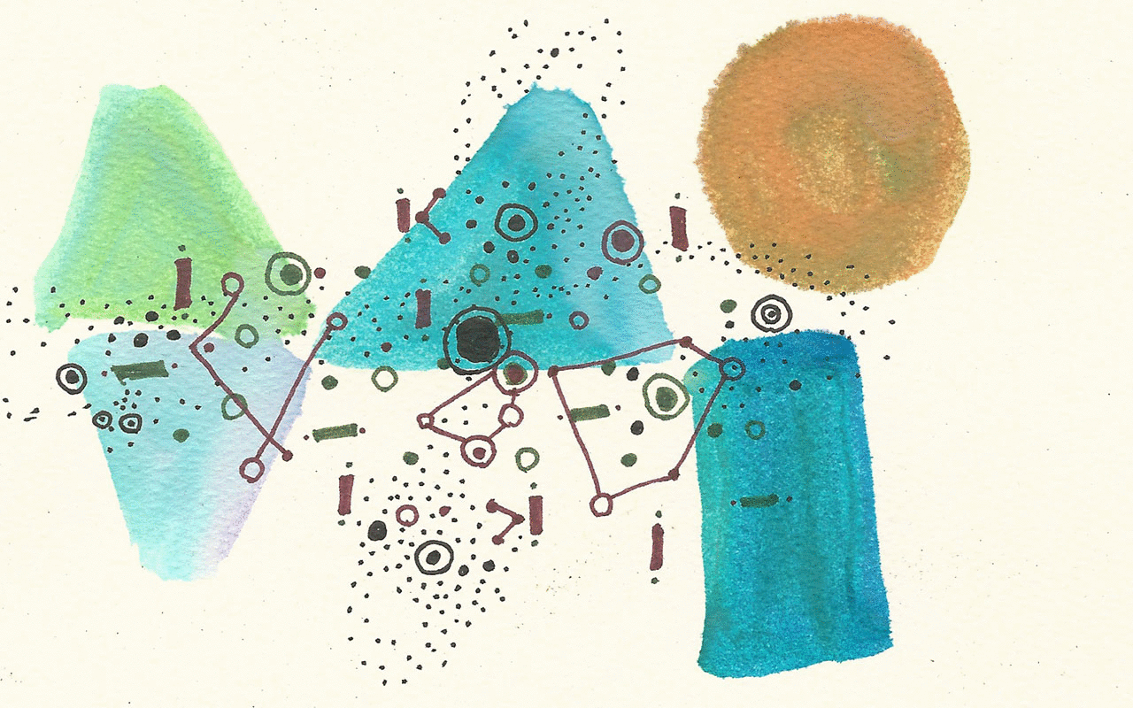 I used a christmas card design I had in the most recent scans pile and layers of gradient, mouse-drawn-text and blending modes to create something that would change colors in unexpected ways, making the image pop and the process transparent.
