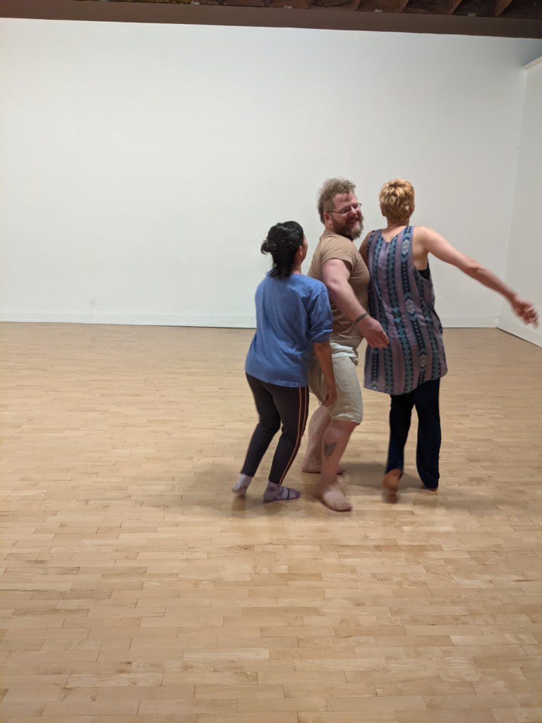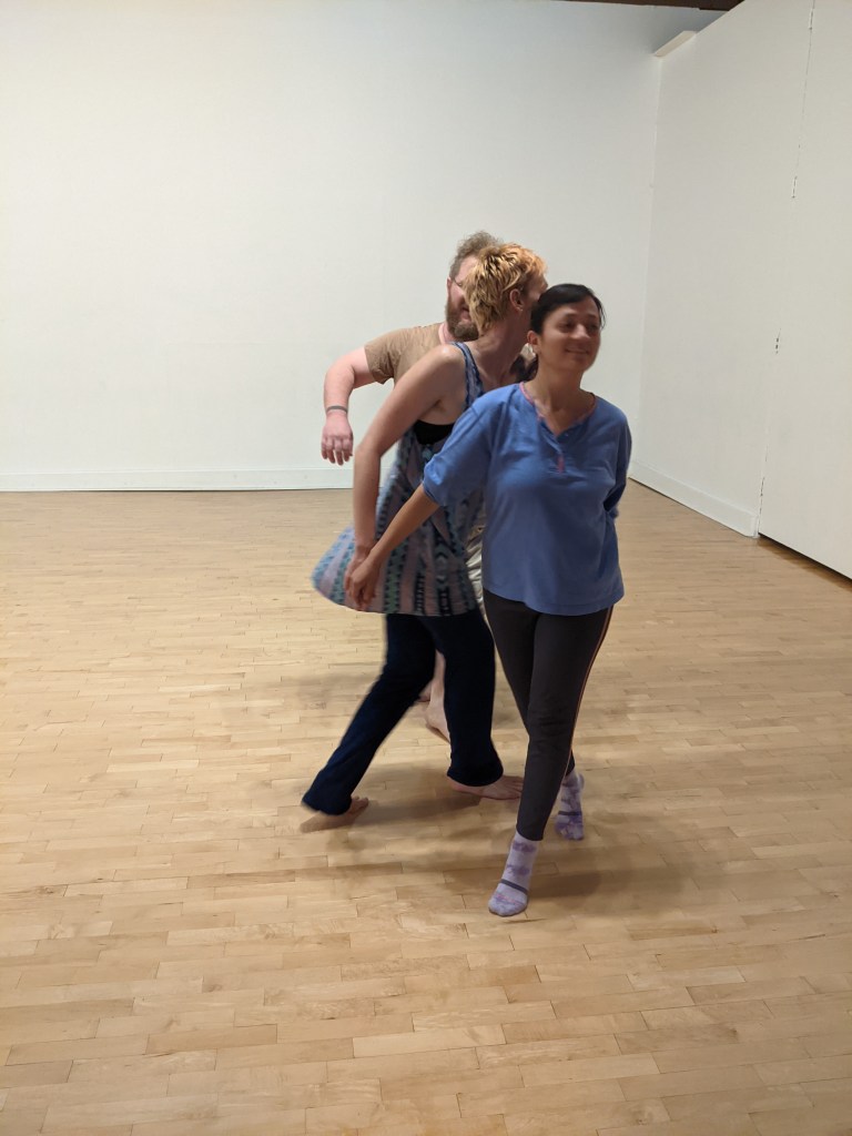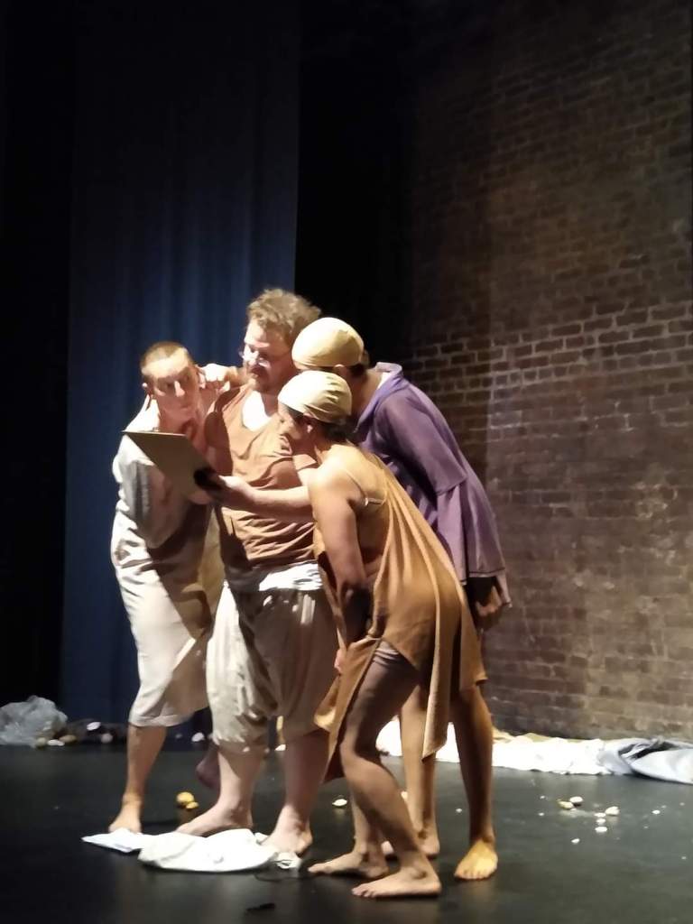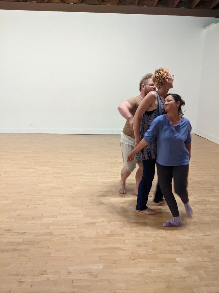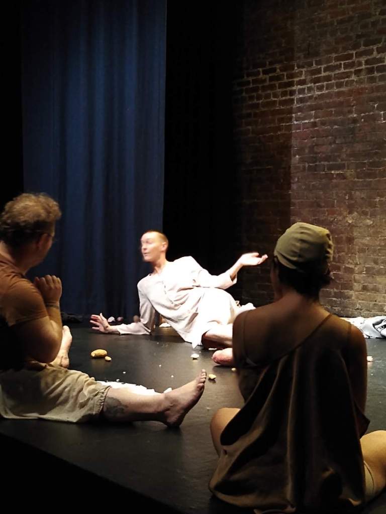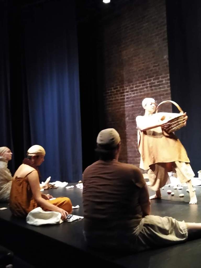 We spent some time doing authentic movement, improv scenes, and running little experiments. We had a work in progress show at the New Now and received feedback via comment cards and a Q&A after the show.