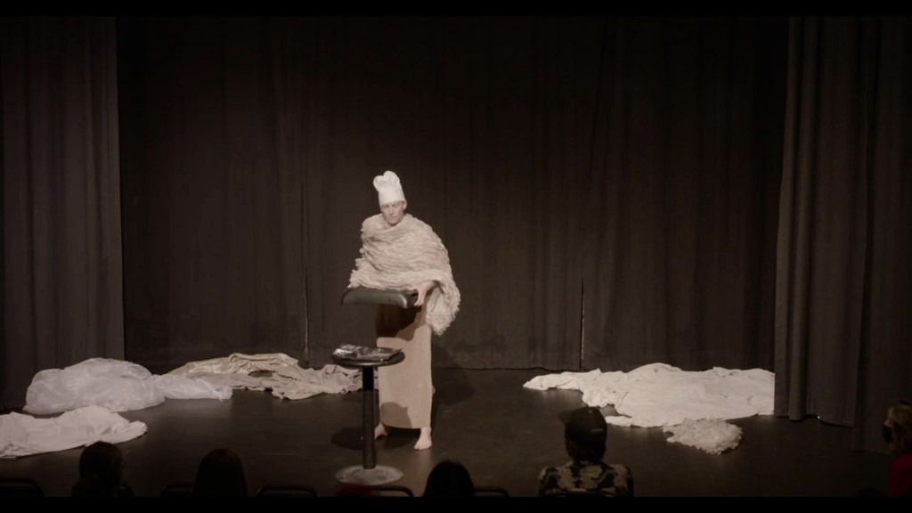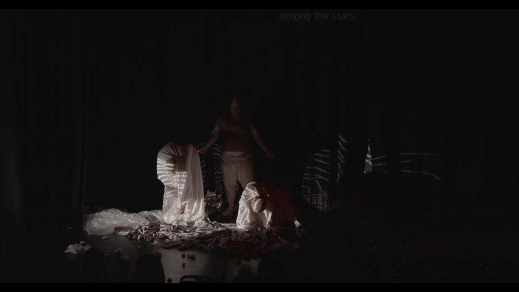 What worked: having snacks beforehand, being open to each other’s ideas, extra rehearsals towards the end of the process, ordained time for writing and feedback, check-ins at the start of our time together, making sure we had a script for our tech person and being specific about it, using playback apps for video projections and audio cues that didn’t rely on the internet (ha!, this had our tech person worried at the rehearsal)