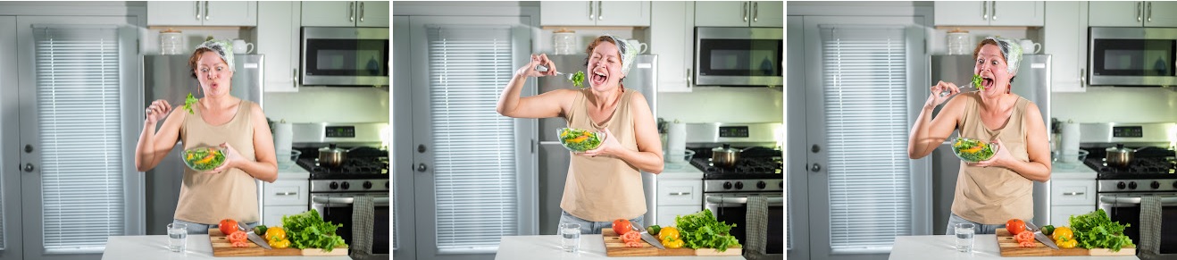 I attended a surreal food event put on by Appetite Obscure called Lettuce Fest. Vincent Woo was running a stock photo operation where guests of the event could fill out some paperwork and become models for shutterstock photography. I have a saran wrapped lettuce leaf on my head from a previous lettuce-related activity. I had so much fun laughing at salad and I feel really grateful to see photos of me that I have such a laugh about!