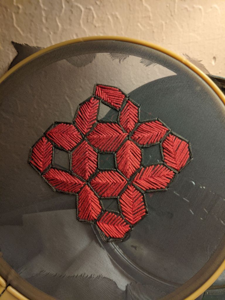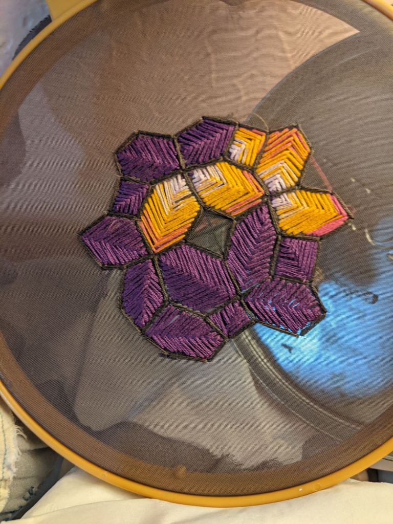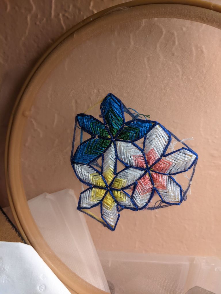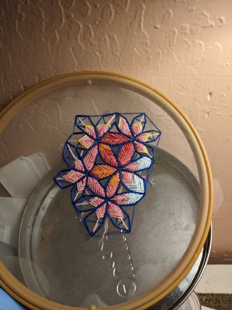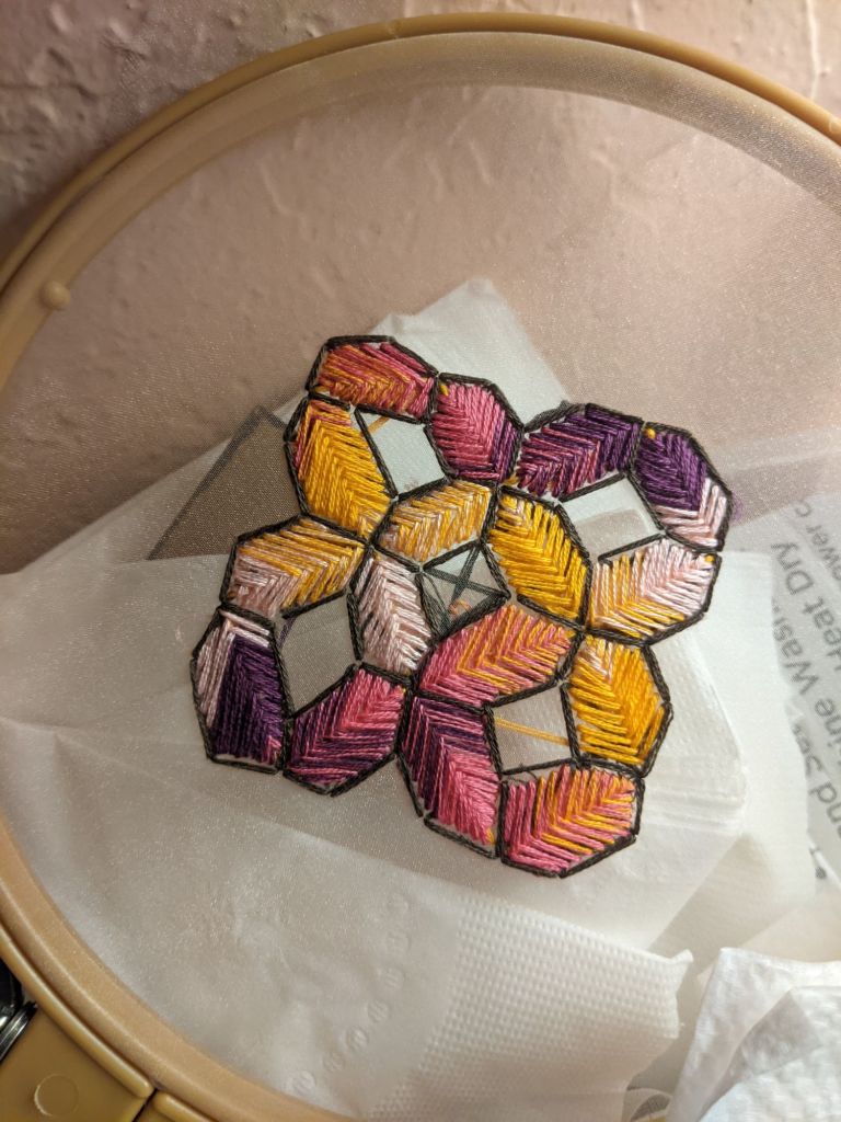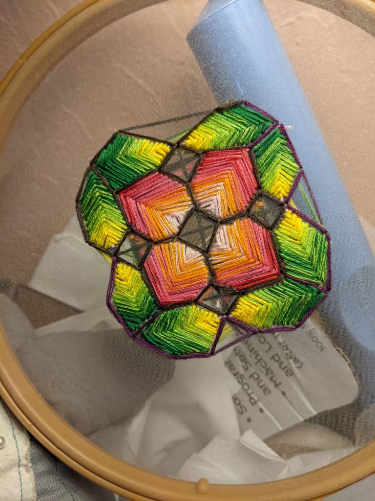 I do this in the morning, after journaling, before lunch. Watching The Magicians adds a layer of magic. This routine centers me, grounding my thoughts and energy. Embroidery is more than art—it’s a practice of self-reflection.