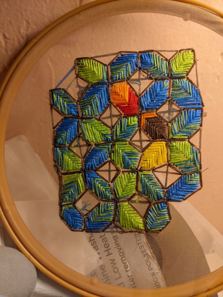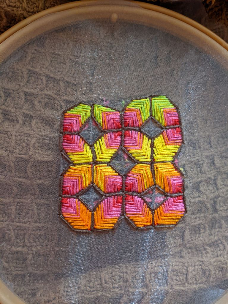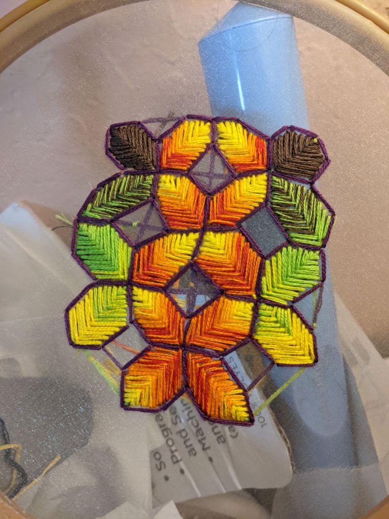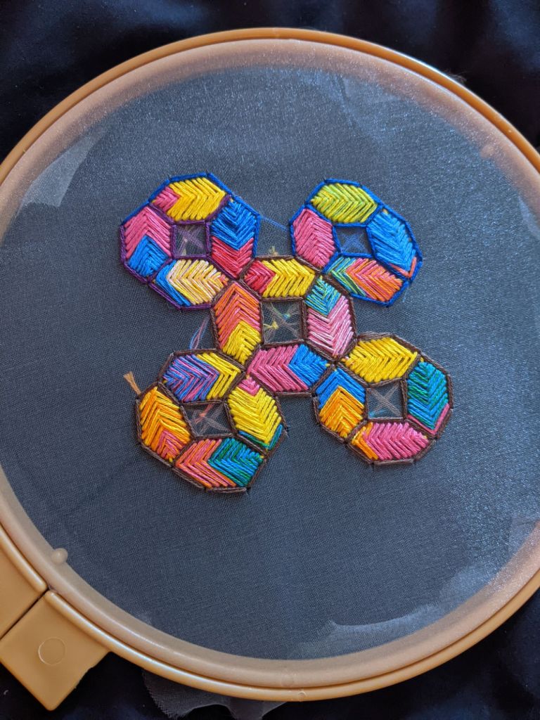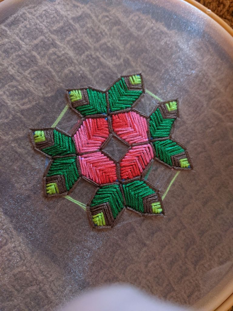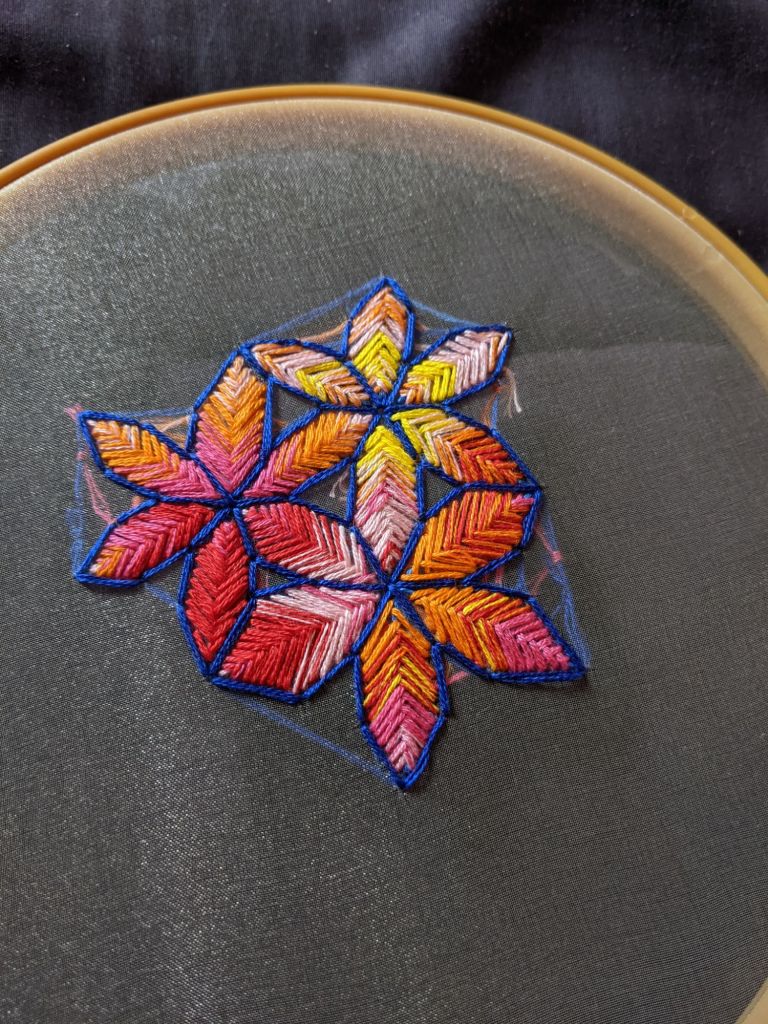 I do this in the morning, after journaling, before lunch. Watching The Magicians adds a layer of magic. This routine centers me, grounding my thoughts and energy. Embroidery is more than art—it’s a practice of self-reflection.