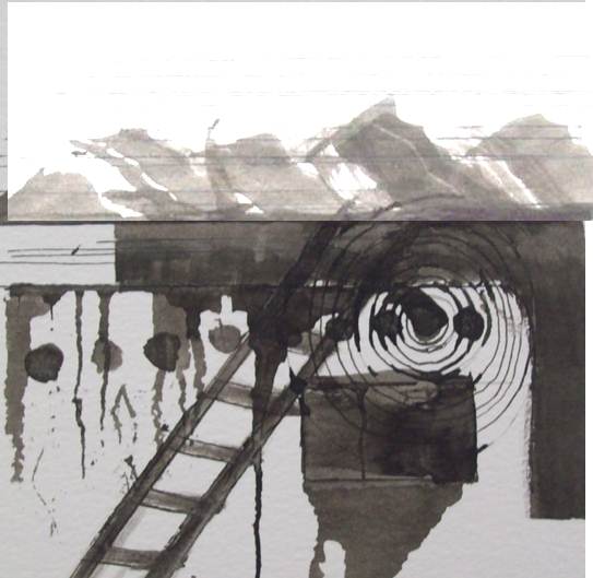 Claire’s critique yesterday left everyone with something to think about. Some common ailments included: low contrast, bad paper choice, slightly awkward compositions and abstraction to the point of obscurity. She had little bits of editing advice that she said that we could do on the computer, to push the pieces a little further towards the ideal. This was my edit: the mountains needed more perspective, otherwise it becomes a little too dark and indiscernible as mountains.