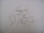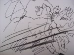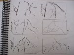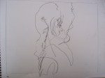 Pages from my sketchbook today. The lesson: blind contours. It was difficult resisting the urge to look at what I was drawing, but I am glad I didn’t. These spontaneous looking squiggles look like something that came out of the fourth dimension (not time, but the one perpendicular to the third dimension). We talked about line quality and the next assignment is to draw something from nature.