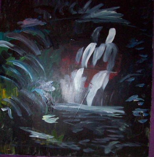 I was thinking what I could paint endlessly and find deep satisfaction after each version of a concept. I have painted many waterfalls and many more to go. Here’s one for today… a three-tiered Hawaiian waterfall.