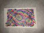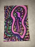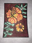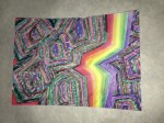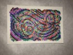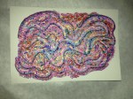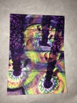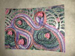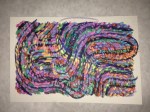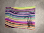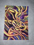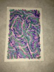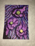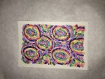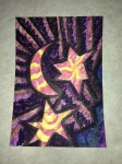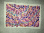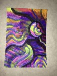 I want to get around to naming the different patterns in the paintings and create a card system to generate new designs. Rainbow coloring is so attractive to me, but what other color palettes should I be exploring? The feathery texture of going against the grain, the threadly pattern of following the stitches… Flowers, stars and oil slicks seem to lend themselves well to the sprinkly underpattern, but what else can be seen? Someone said that there’s a face in “Manoa at Night”. Maybe you can find it?