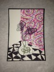 The stage: I had the raffle table and a stool holding my book bag with 3 framed pieces. I put my water bottle and cell phone on the table and started recording a video (below).