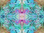 This was over a month a ago (I’m late on blogging these things) which makes for an interesting perspective on the project. This was my “cyber-shaman” phase when I thought myself some kind of priestess, wearing body paint and scarves, seeing into the feedback loops of my webcam and finding some truth to shapes and the material of reality.